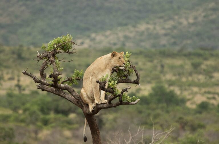 Lions can be found in Akagera National Park in Rwanda and Murchison Falls, Queen Elizabeth, and Kidepo Valley National Parks in Uganda. Rwanda’s lion population, once nearly extinct, has made a remarkable recovery since their reintroduction in Akagera. Tree-climbing lions in Queen Elizabeth National Park’s Ishasha sector offer a rare and fascinating sight, as they rest on fig tree branches during the heat of the day.